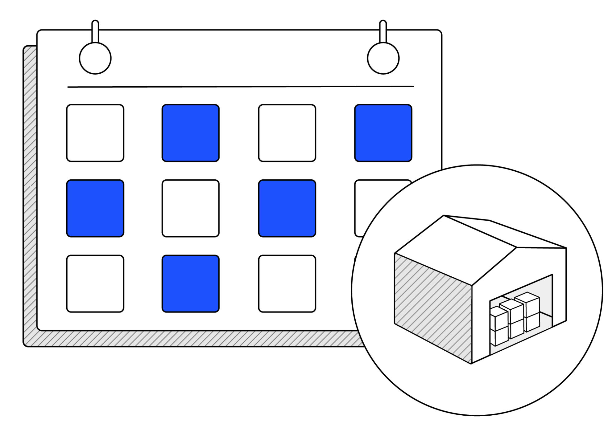 Pay only for the capacity and services you use. Our pricing and services are transactional, so you won’t get stuck in a fixed-term contract that leaves you paying for more solution than you need. Now, you can easily solve for unexpected inventory overflow and better manage peak-season capacity constraints.